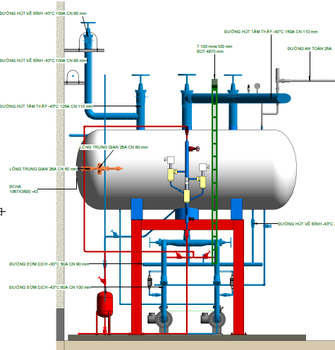 - Chứa lỏng hạ trong hệ thống lạnh sử dụng môi chất R717A (Amoniac);