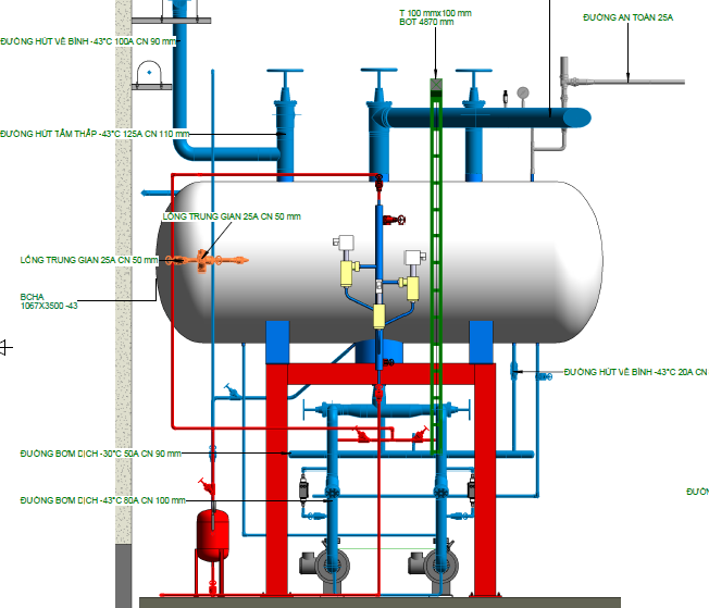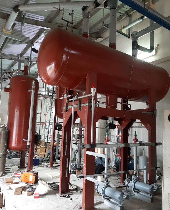 - Bình chứa hạ áp của hệ thống lạnh sẽ được ANT tư vấn thiết kế, gia công chế tạo tại Việt Nam khi có đơn đặt hàng. Các mối hàn thân bình áp lực đều được thực hiện bằng máy hàn tự động, bảo đảm mối hàn bám chắc, đồng đều, không bị bọt khí và có tính thẩm mỹ cao. Nắp bình áp lực dạng chỏm cầu. Vật liệu bằng thép A36/SS400 hoặc tương đương. Bình được thiết kế chế tạo theo tiêu chuẩn TCVN8366:2010 hồ sơ lý lịch đầy đủ bao gồm: biên bản kiểm tra siêu âm, hồ sơ tính toán sức bền, bản vẽ chế tạo và biên bản nghiệm thử;